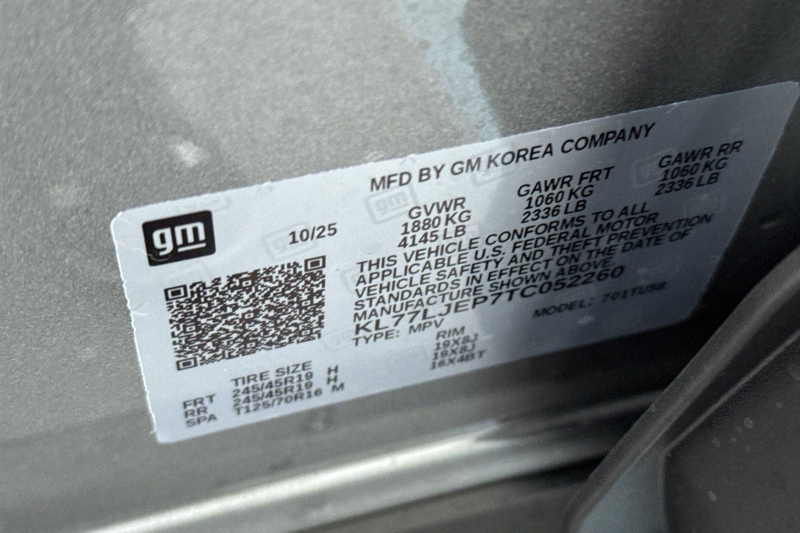 - Tires, 245/45R19 all-season, blackwall